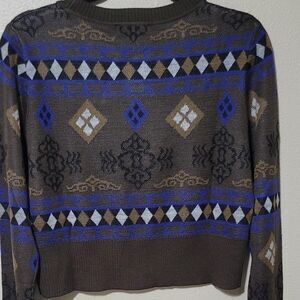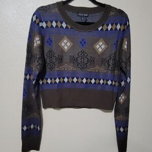 Current Mood Autumn Edge Argyle Knit Cropped Sweater Size L NWT