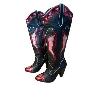 Current Mood Black Pink Shimmer Butterfly Cowboy Boots Size 6