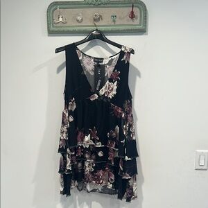 Current Mood Black purple Tiered v neck Mini Dress oversized small women’s new