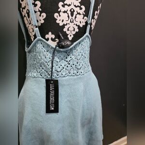 Current Mood Blue Cotton Crochet Mini Dress Sz XL NWT