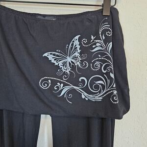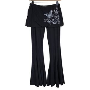 Current Mood Butterfly Print Skirted Flare Pants Women's Size Large Y2K Goth