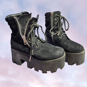 Current Mood Greenpoint Platform Black Suede Zip Up Festival Rave Boots Sz 8