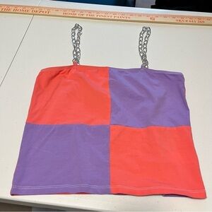 Current Mood Pink Purple Checkered Chain Crop Tank Top XL F