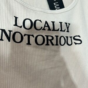 Reads “ LOCALLY NOTORIOUS” / black letters
