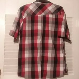 Red, Black, Gray & White Plaid Current Button up Shirt. Like New Size XL