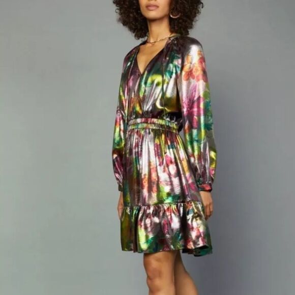 Current air Anthropologie floral metallic long sleeve mini dress