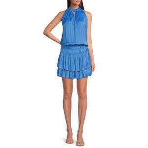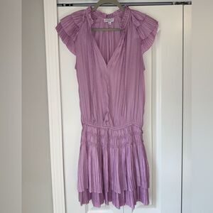 Current Air Purple Pleated Mini Dress with Flutter Sleeves Women’s Size Small