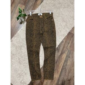 Current/Elliot 26 Leopard Print Raw Hem High Rise Stiletto Cropped Skinny Jeans