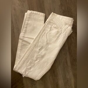 Current/Elliot White Tattered “The Stiletto” skinny jeans