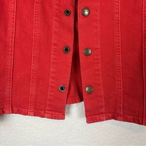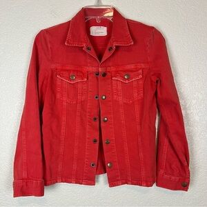 Current/Elliot Mechanic Distressed Button Front Denim Jacket in Fire Red Small