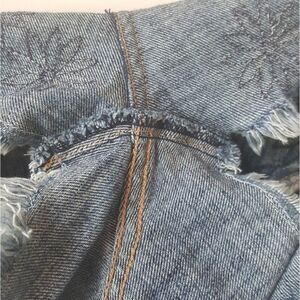 These Jean Shorts have multiple signs of distress please see photos provided. They also have embroidered flowers. This does not come with the clip on picture 5