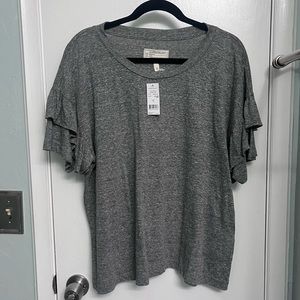 NWT!!! Current/Elliot “The Ruffle Roadie Tee.” Oversized fit with tiered ruffle sleeves. Size: 3 (L), Color: Heather Grey.