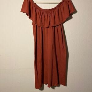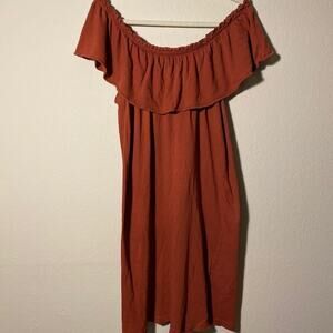 Current Elliot off the shoulder rust/ burnt orange cotton dress. The ruffle dress “Rosewood” Size 2. Medium. Measurements taken while flat.