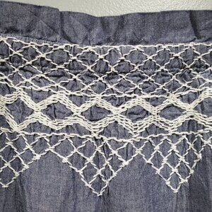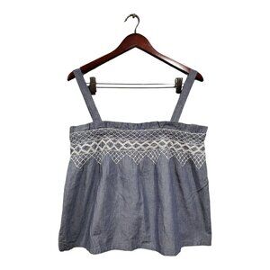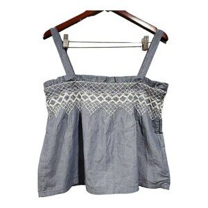Current/Elliot Women's Chambray Smocked Embroidered Tank Top Blue White Sz 1, Sm