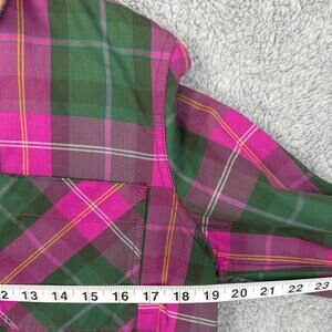 Current/Elliot Women’s Plaid Button Up Shirt Pink Green Fray Hem SZ 1 Layering