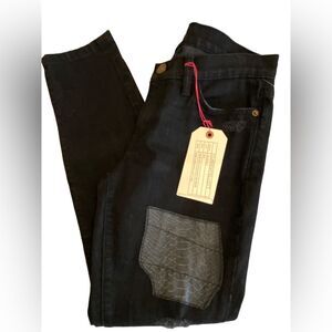 Current/Elliot black jeans, snakeskin leather, lace & suede patches size 30 NWT