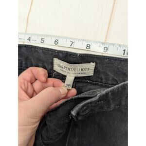 Stylish Current Elliot Boyfriend jeans in "Black Onyx"! Higher rise with ripped knees and an ankle length. Gently worn and in excellent condition. Size 26