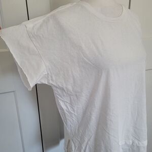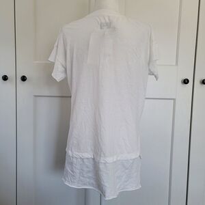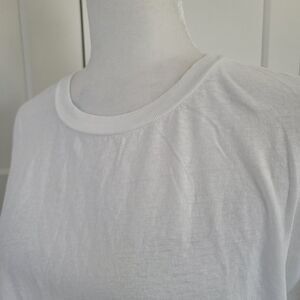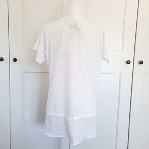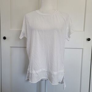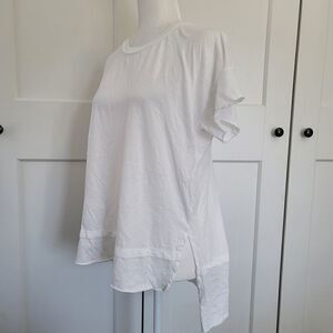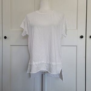 Rolled edges and a split step hem make this ultrasound cotton tee enough out of the ordinary to keep it from migrating to the back of your closet