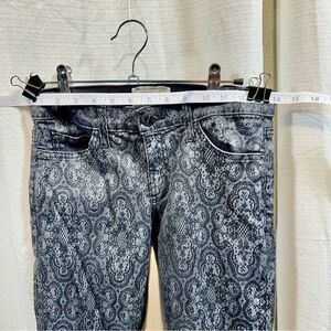 Beautiful black jeans with a repeating pattern. They are in great condition. Measurements in photos.