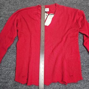 Embrace the cozy season with this stylish Current/Elliott sweater. The vibrant red color and V-neckline make it a versatile addition to any wardrobe. Made from a luxurious cashmere blend, this pullover sweater is perfect for layering or wearing alone. The size 0 fit is ideal for petite women, while the destroyed details add a trendy touch. Whether you're running errands or relaxing at home, this sweater will keep you comfortable and chic.