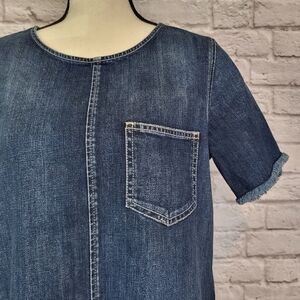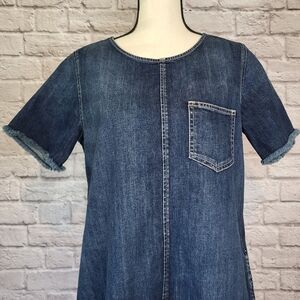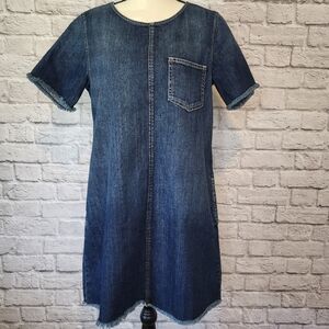 Current/Elliott Frayed Edge Shift Denim dark wash short sleeve mini dress sz M