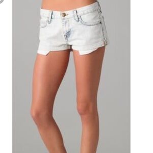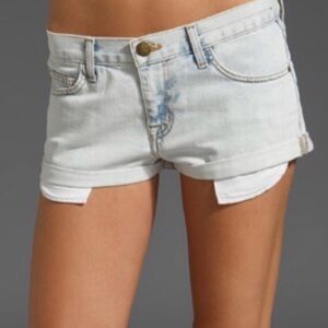 Good pre-loved condition see photos. These denim Current / Elliott shorts feature 5-pocket styling and a single-button closure. Peek-a-boo pockets and rolled cuffs.