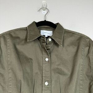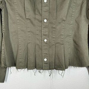 Current/Elliott Green Button Up Shirt Long Sleeve Raw Hem Pin Tuck Size 1 Small