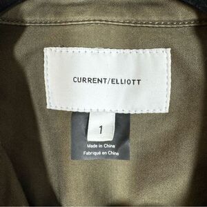 Current/Elliott Green Button Up Shirt Long Sleeve Raw Hem Pin Tuck, Slight Puff Sleeve, Military Vibes, Structured, In Excellent Preowned Condition. Women’s Vanity Size 1 Or Small Could Possibly Fit A Smaller Medium