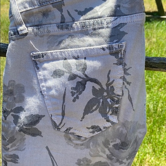 Current/Elliott size 24/0 jeans. These detailed jeans are light gray with a dark gray floral print. They look vintage but are truly like new. Really nice!! Great deal... retail for $228 & never less than $68 on sale. Great jeans!!