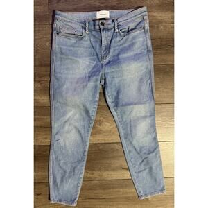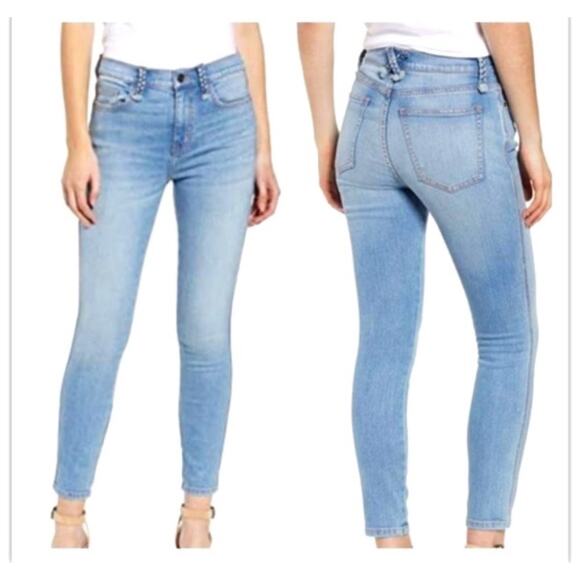 Stylish skinny jeans. Light blue wash. Comfortable fit. Perfect for casual wear.