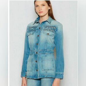 Current/Elliott Long Button Down Smocked The Festival Denim Jean Jacket