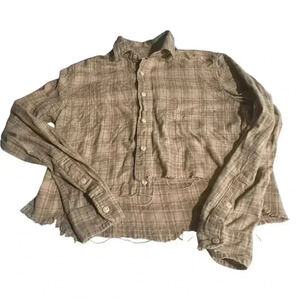 Current/Elliott Mell Painter Plaid Raw Hem Cropped Button Down Shirt 0 XS EUC