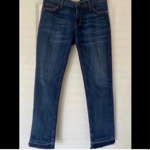 Mid rise straight raw hem jeans in “Loved” wash. Run large. Excellent condition!