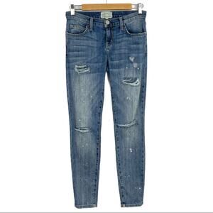 Current/Elliott Paint Splatter Stiletto Distressed Jeans 26
