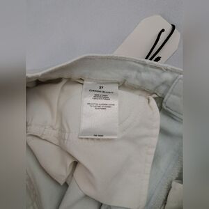 The product is a pair of Current/Elliott Relaxed Cuffed Boyfriend Fit Jeans in light blue, size 27. These jeans feature a relaxed fit with cuffed hem, making them a stylish and comfortable option for women. Made from a light wash fabric, these jeans offer a casual yet trendy look that can be dressed up or down. The boyfriend style adds a relaxed and laid-back feel to the overall design, perfect for everyday wear.