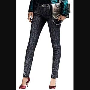 Current/Elliott Revolve Ankle Skinny Jean 26 Black Antique Lace Denim Printed