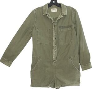 Current/Elliott Romper Reversed Military Utility Minimalist Rustic Boho Green 0
