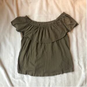 Current/Elliott Ruffle Army Green Off-the-Shoulder Top