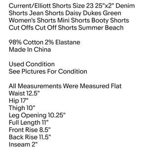 Current/Elliott Shorts Size 23 25"x2" Denim Shorts Jean Shorts Daisy Dukes Green Women's Shorts Mini Shorts Booty Shorts Cut Offs Cut Off Shorts Summer Beach