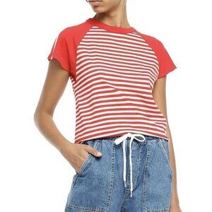 Current/Elliott Size 1 Saturday Striped Baseball Tee In Red White Stripes