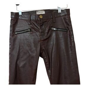 Current/Elliott Size 27 The Soho Zip Stiletto Skinny Brown Coated Ankle Pants