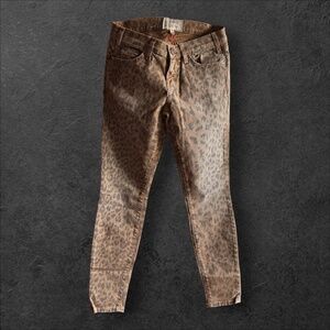 Current/Elliott Stiletto jeans from 2012. New with tags. Never worn. All tags attached. No flaws. 98% cotton, 2% elastane. Made in USA. Skinny fit through knee. Ankle length inseam. Classic leopard print on camel base.