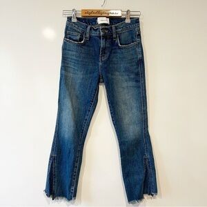 Current/Elliott Straight Leg High Rise Frayed Jeans