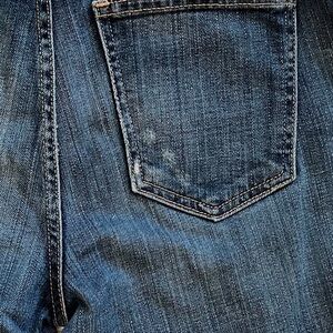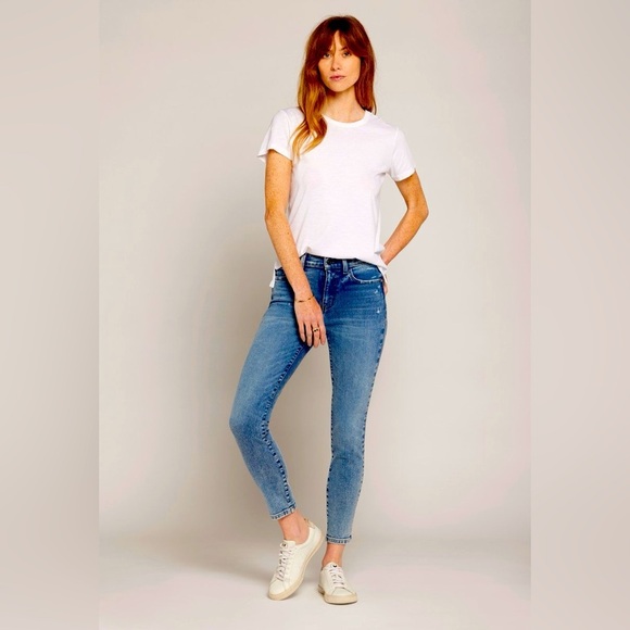Current/Elliott The Ankle Skinny Blue Denim Jeans. 5-0pocket construction, button zip fly, dome distress and factory fade.