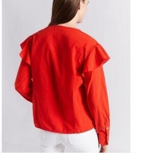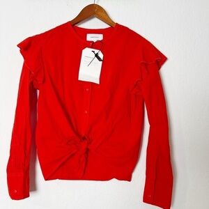 Current/Elliott The Ashley Red Ruffled Sleeve Front Tie Blouse