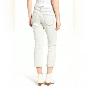 Current/Elliott The Cropped Straight Channing Destroyed Jeans Light Wash Sz 28