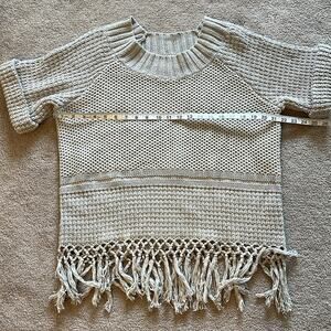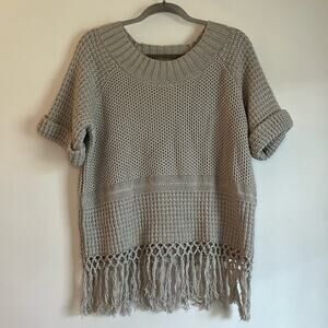 Current/Elliott The Peggy Crochet Fringe Sweater Size 2/M Gray Fisherman Boho