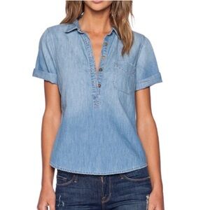 Current/Elliott The Popover Chambray Short Sleeve Denim Button Down Shirt 3