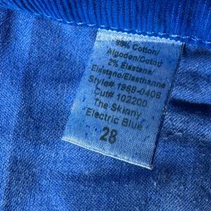 Current/Elliott The Skinny Electric Blue Corduroy Zip Fly Colorful Pants