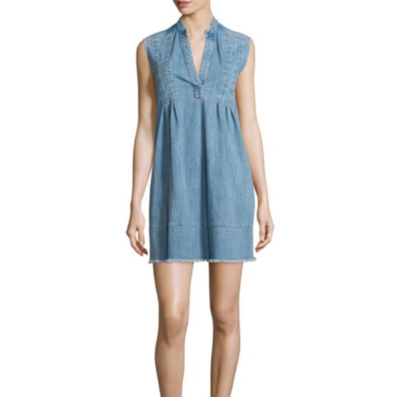 Current/Elliott The Sleeveless Tuck-Pleated Denim Dress, Mid-Day